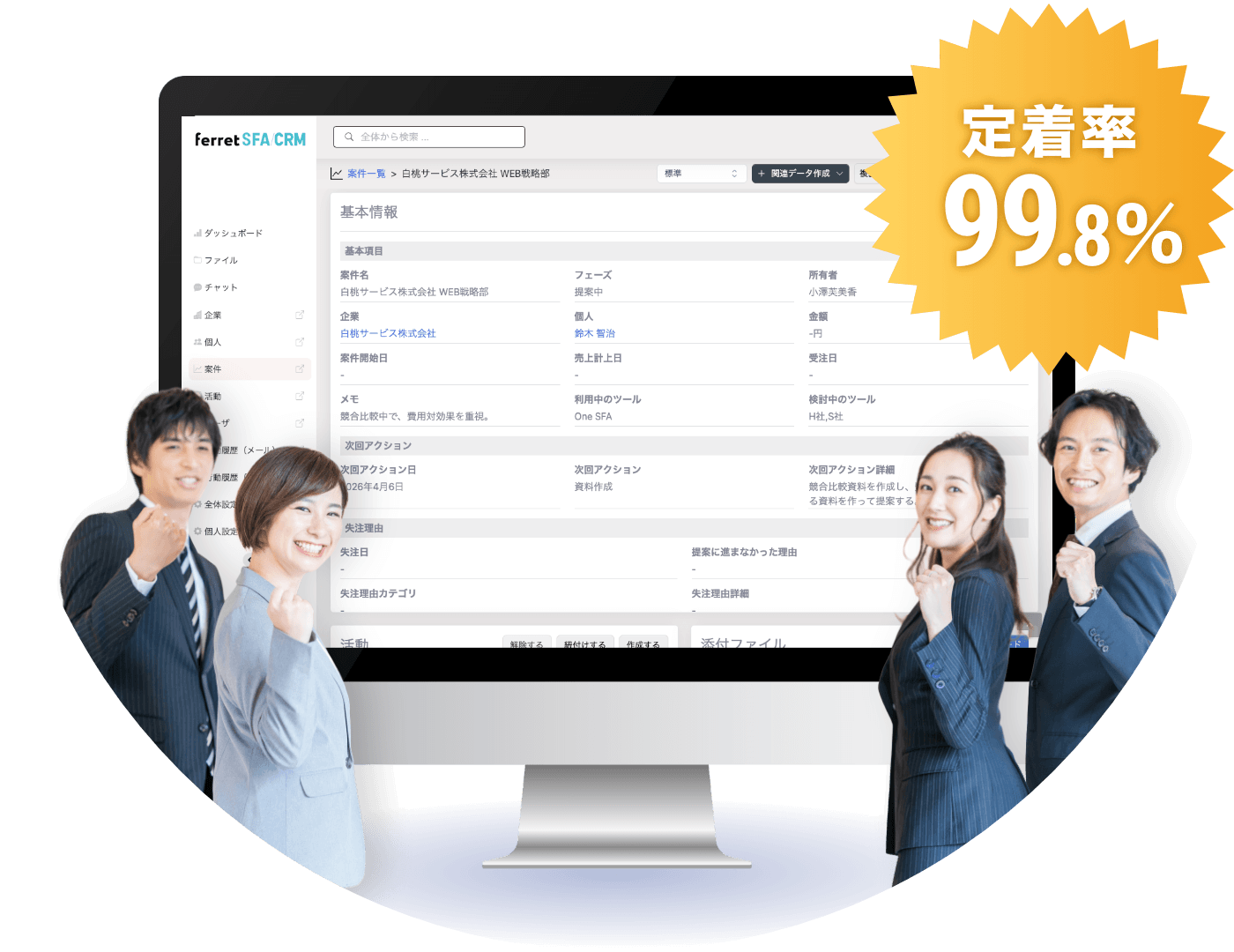 ferret SFA/CRMは、現場定着率99.8%を掲げ、
