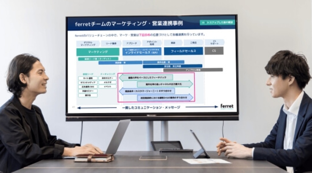 ferret SFA/CRMの導入後は、ターゲット案件の抽出と共有が格段にスムーズになり、Excel管理では見えにくかった案件の進捗もリアルタイムで確認できるように。会議資料も数字の羅列ではなく、グラフや指標を共有する形へ変化しました。