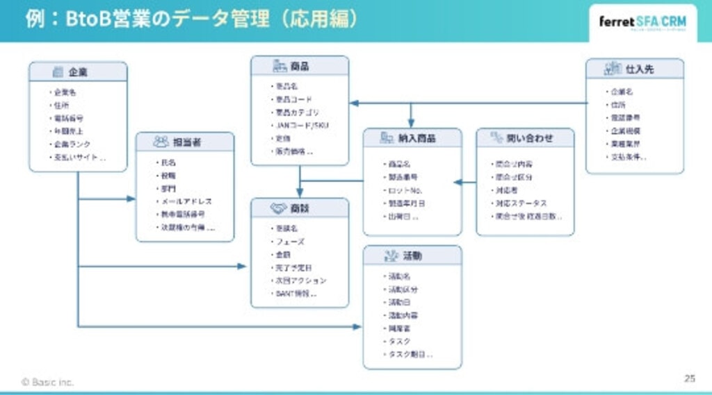 ferret SFA/CRMは、自社でよく使う呼称や分類方法に合わせて、項目名や管理方法を調整できるため、誰でも一目で意味がわかり、引き継ぎもラクラク。